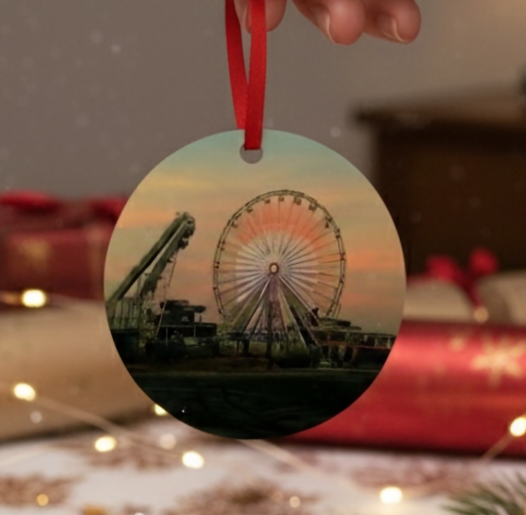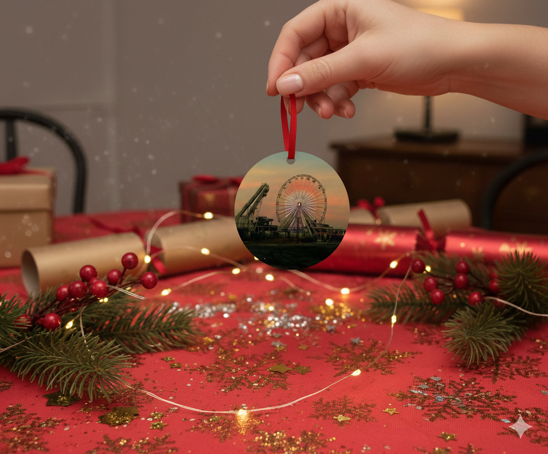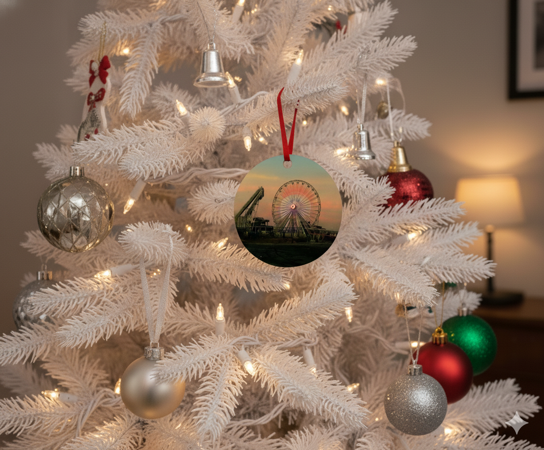 Captured by Tony Deutsch (and definitely not AI), this festive ornament features Morey’s Piers Ferris wheel glowing with holiday magic—complete with Santa lit up in the design! A joyful blend of boardwalk wonder and Christmas cheer, straight from Wildwood’s winter nights. Measures 2 3/4 “