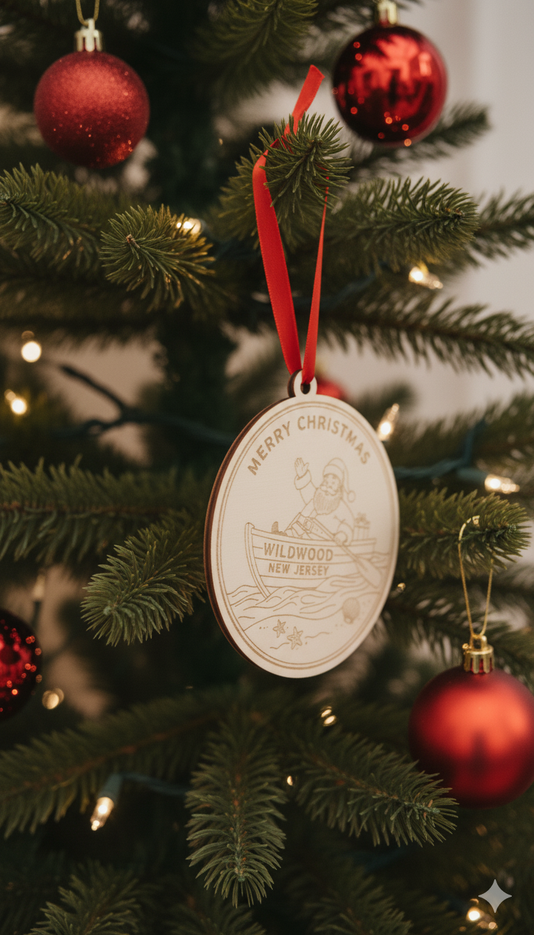 Bring a touch of seaside holiday cheer to your tree! This 3-inch engraved ornament features Santa aboard the classic Wildwood NJ Lifeguard Boat, beautifully detailed on 3mm basswood. Each piece is crafted in-house on our precision laser engraving machines, ensuring authentic design and quality craftsmanship. The back is blank.