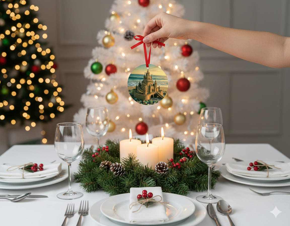 Celebrate the shore with this charming ornament featuring a handcrafted sand castle nestled on the beaches of Wildwood, NJ. Complete with tiny seashells and boardwalk vibes, it’s a perfect tribute to summer memories and coastal Christmas cheer. Measure 2 3/4″