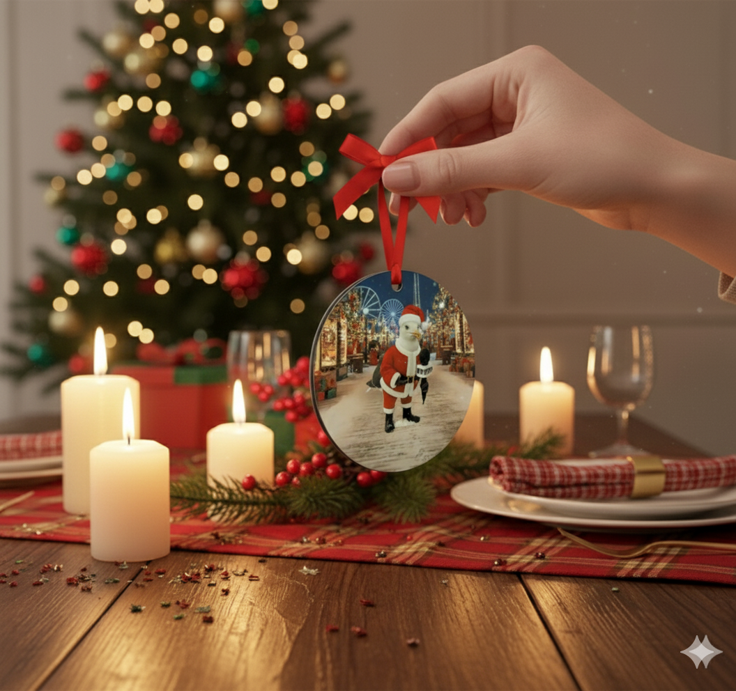 Celebrate the holidays with a true Wildwood original! This double-sided MDF ornament that measures 2 3/4 inches that features Watch The Tramcar Please’s beloved reporter, Gus McFeathers, in his festive debut Santa Suit or dressed as the Grinch. Durable, lightweight, and full of boardwalk personality, it’s the perfect keepsake for fans of Gus and shore lovers alike. Hang a little humor and hometown pride on your tree this year!